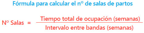 Una manera rápida de determinar cuántas salas de partos se necesita en cada sistema viene determinada por la fórmula: