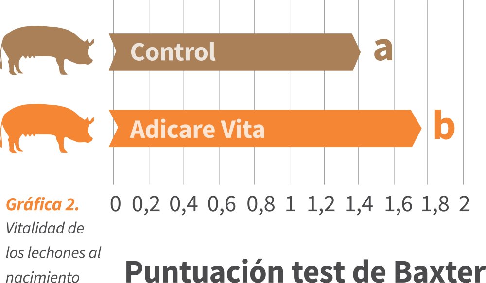 - Mejorar la vitalidad de los lechones nacidos según las puntuaciones del test de Baxter adaptado (Gráfica 2)