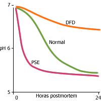 de una caída muy rápida del pH muscular tras el sacrifico, de