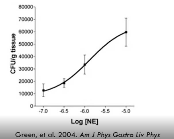 Figuur 1: Concentratie van E. coli als functie van de hoeveelheid norepinefrine