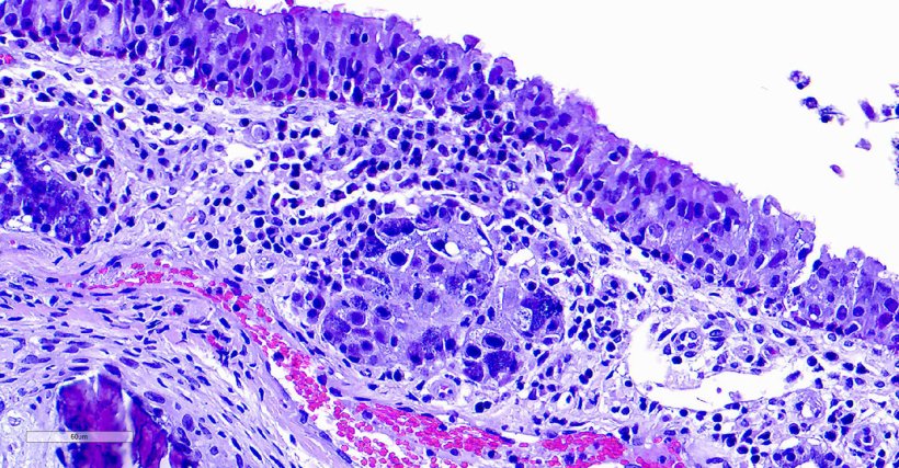 La rinitis por cuerpos de inclusión (IBR) está causada por el citomegalovirus porcino (PCMV). Esta enfermedad recibió su nombre debido a los característicos cambios histopatológicos observados en las células de la mucosa nasal de los cerdos afectados. Estos animales presentan cuerpos de inclusión intranucleares basófilos, principalmente en las glándulas submucosas, aunque también pueden hallarse en otros tejidos. Aunque el PCMV está ampliamente distribuido y presenta una elevada prevalencia en las poblaciones porcinas, su impacto en la industria porcina sigue sin estar claramente definido y suele ser subestimado, debido a las posibles interacciones con otros patógenos.