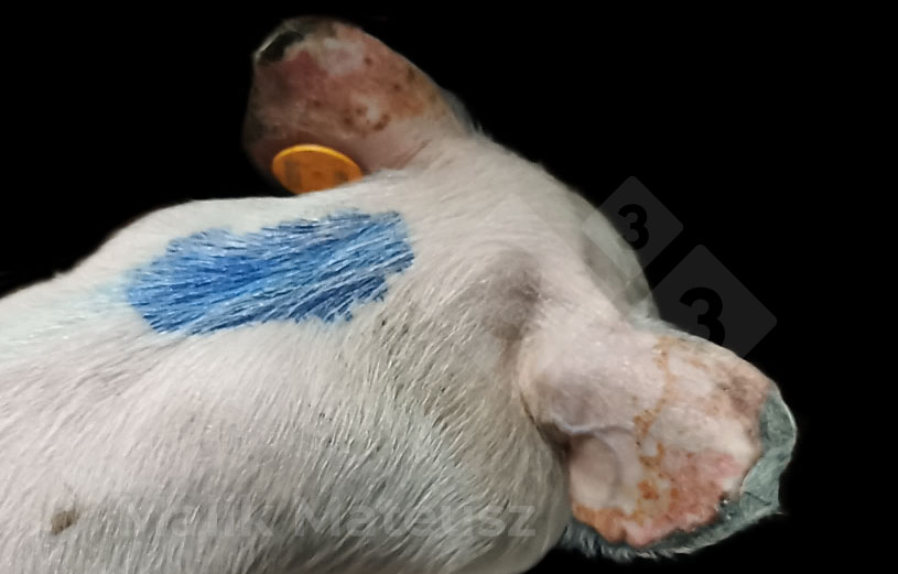 Aun así, no debemos pasar por alto los casos relativamente raros de lesiones auriculares en lechones gravemente enfermos, que podrían estar asociados con alteraciones de la circulación sanguínea o infecciones cutáneas subyacentes y que podrían requerir una mayor atención de estudio.