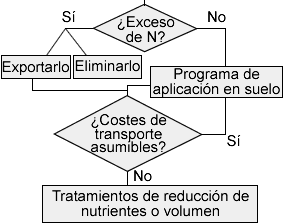 Figura 1. Esquema de toma de decisiones para la selección de la estrategia más adecuada para la gestión de purines, teniendo en cuenta la limitación por N en el suelo como factor limitante (Teira, 2003).