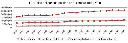 | AÑO | TOTAL | Lechones | Cerdos de 20 a 49 kg de p.v | Cerdos en cebo de 50 o más kg de p.v | Reproductores de 50 o más kg de p.v | |