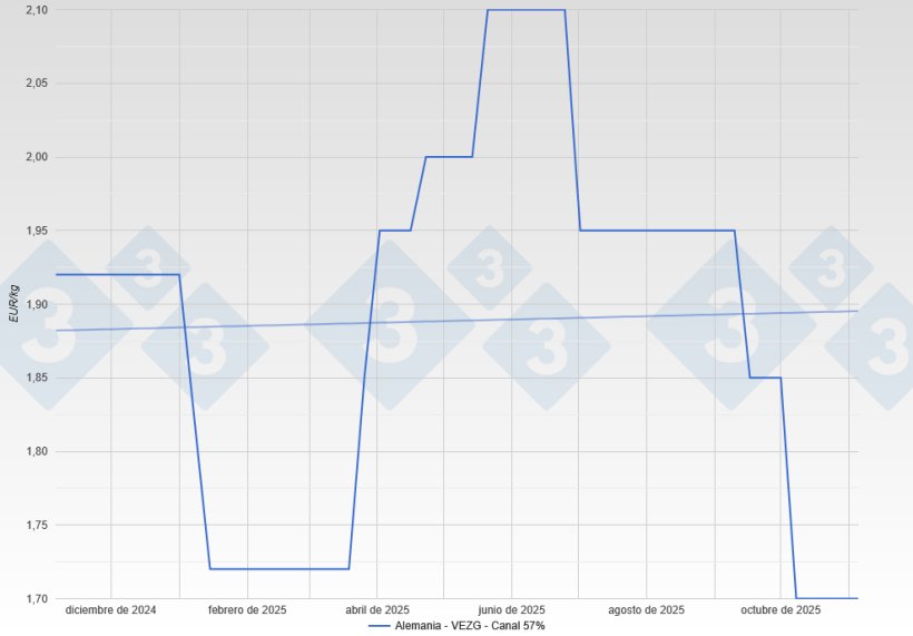 Octubre sacudió el mercado porcino alemán, que finalmente encontró una frágil estabilidad a un nivel más bajo. A comienzos de mes, la cotización se mantenía estable en 1,85 €/kg, respaldada por la expectativa de un equilibrio entre oferta y demanda. Sin embargo, el ánimo cambió repentinamente: en pocos días los precios cayeron a 1,70 €/kg, marcando una ruptura brusca del mercado. Las causas fueron la acumulación de cerdos listos para sacrificio tras el festivo nacional, la demanda moderada de los mataderos y la presión del entorno europeo. Los grandes procesadores mostraron sus márgenes reducidos y la estructura de precios internos más débil. Esta combinación de oferta adicional y demanda contenida provocó la corrección.