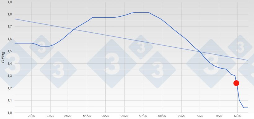 El mercado regulador del precio español del porcino, Mercolleida, reaccionó inmediatamente (hubo incluso una sesión extraordinaria el lunes día 1 de diciembre) bajando 26 céntimos por kilo en vivo en dos semanas consecutivas. Desde 1,30 euros / kilo en vivo acordados el jueves día 27 de noviembre hasta 1,04 euros / kilo en vivo de ahora mismo. Conscientes los miembros de la mesa de las sobrevenidas dificultades de acceso a los Países Terceros se trataba de facilitar a los mataderos unos cerdos baratos para colocar mucha más carne de la habitual dentro de los confines de la Unión Europea. La maniobra ha tenido bastante éxito, ayudada por la demanda navideña.