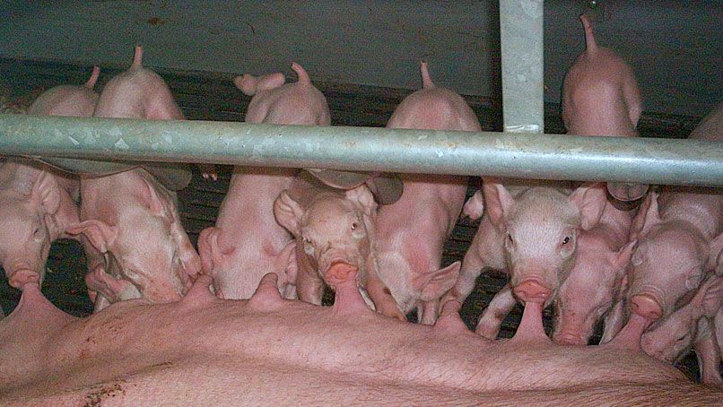 Cuando faltan tetas, el lechón más fuerte siempre ocupa la posición del débil, que se queda sin mamar.