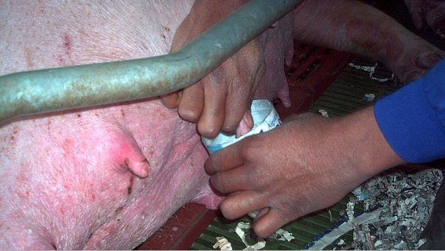 Extracción de calostro en cerdas pinchadas con oxitocina de acción prolongada