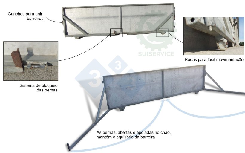 - Foi construído para se ligar a outras barreiras semelhantes, a fim de estabelecer uma longa parede de vedação entre dois galpões.