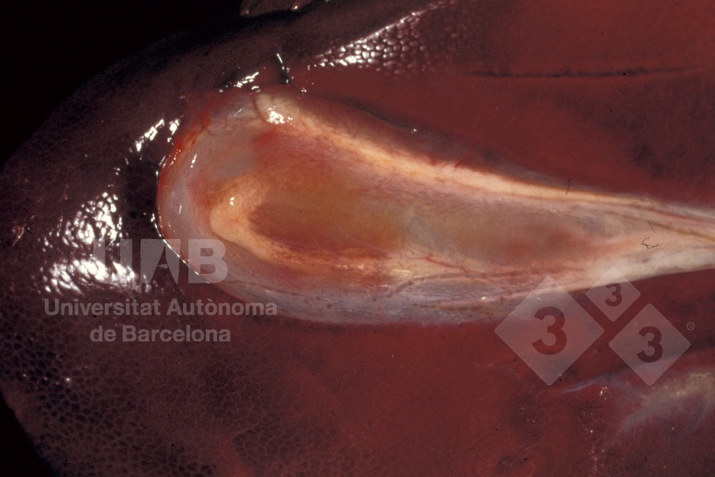 Trata-se de um edema da parede da vesícula biliar. Costuma ser causado pela doença do edema (colibacilose enterotoxêmica), mas no diagnóstico diferencial podem incluir-se outras doenças como a hepatose dietética.