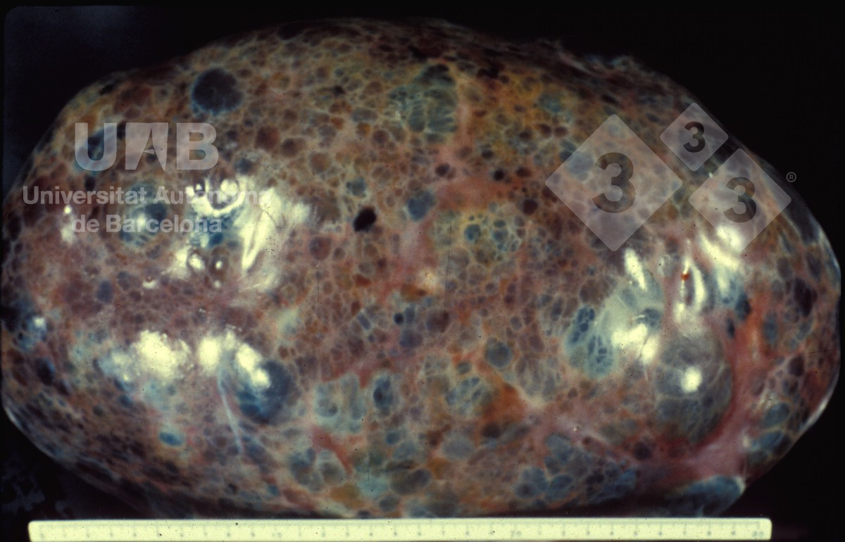 Estas lesões correspondem a cistos intra-hepáticos congênitos e acredita-se que derivam dos ductos biliares embrionários. Do ponto de vista de saúde pública, esta lesão deve diferenciar-se dos cistos hidáticos produzidos pelo cisticerco Echinococcus granulosus. O cisto hidático fértil tem "cápsulas filhas", que contêm protoescólices e "areia hidática" no seu fluido, que consiste em cápsulas filhas e protoescólices livres.