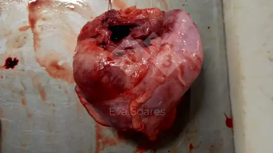 No frigorífico, foi encontrada esta inflamação da face parietal e visceral do pericárdio em um suíno de terminação. Qual é o nome dessa lesão?