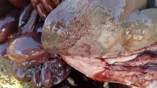 Este animal apresentava quadro de problemas respiratórios. Qual pode ser a causa dessas lesões no pulmão?