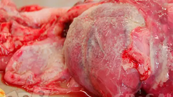 Ao visitar uma granja encontramos este animal. Recomendamos sua eutanásia imediata. Qual patologia observamos?