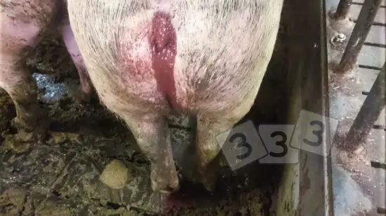 Em uma baia há uma matriz gestante com sangue na vulva. O que pode ter causado isso?