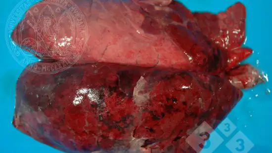 Qual a possível causa desta lesão encontrada na necropsia de um animal que apresentava febre e letargia?