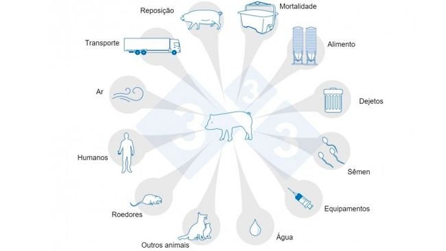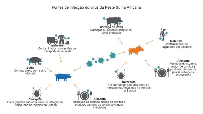 Um estudo que revisa todas as vias de transmissão do vírus da peste suína africana (PSA).