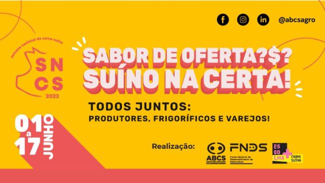 A campanha ocorrerá entre os dias 1 e 17 de junho de 2022 em todo o Brasil e terá o foco principal no maior custo-benefício da proteína suína.
