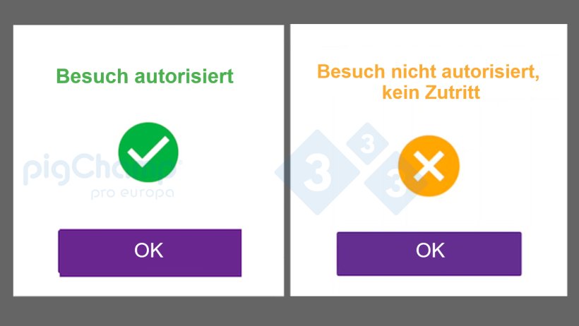 Abb. 1: Beispiele für einen autorisierten Besuch (links), eine Warnmeldung über einen nicht autorisierten Besuch (Mitte) und einen nicht autorisierten Besuch, bei dem der Zutritt verweigert wurde (rechts)