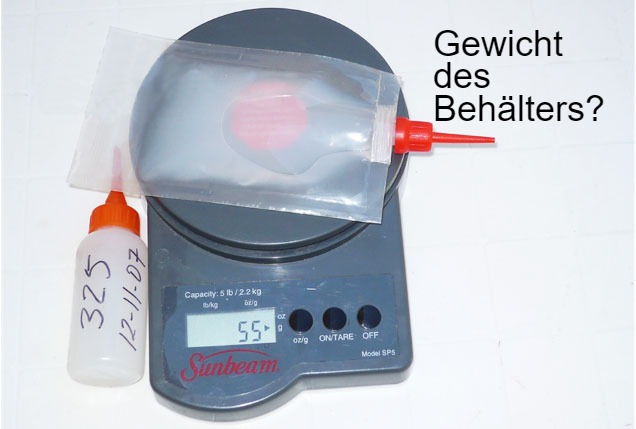 Das Unternehmen hatte zunächst 110-ml-Behälter benutzt, so dass die benötigte Gesamtmenge für 20 Dosen von 3x109 Spermien 2.200 ml betrug. Als der Behälter gewechselt wurde, berücksichtigte man die neue Menge nicht. Beim Wiegen der Dosis stellte man fest, dass das Gesamtgewicht 50-55 g betrug, so dass man bei einer Menge von 2.200 ml über 40 Dosen erhielt und die Anzahl der Spermien pro Dosis unter 1,5 x 109 lag (Foto 2).