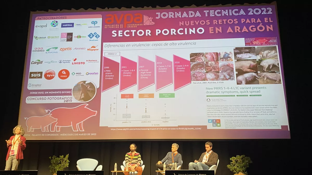 Aprendiendo de PRRS en la jornada técnica de la AVPA (Huesca, Marzo’22), con 3 reconocidos expertos en la materia: Cinta Prieto (UCM), Gerard Martín (UAB) y Jordi Baliellas (GSP/Interporc)