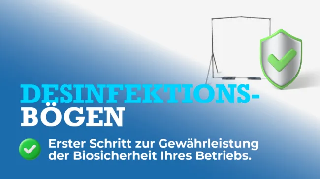 Desinfektionsbögen verhindern die Verbreitung von Krankheiten, die durch den Kontakt mit Fahrzeugen übertragen werden, die auf anderen Höfen oder in Außenanlagen (Futterfabriken, Schlachthöfen usw.) kontaminiert worden sein könnten.