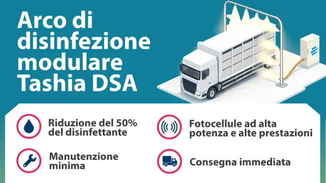 L'impiego di archi di disinfezione consente di migliorare la biosicurezza negli allevamenti . Si tratta di un elemento essenziale della biosicurezza esterna per garantire la protezione degli allevamenti dall'ingresso di agenti patogeni esterni.