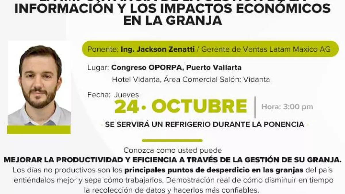 Maxico AG en conjunto con nuestro distribuidor en México, Suma Internacional, les invita a la plática: LA IMPORTANCIA DE LA GESTIÓN DE LA INFORMACIÓN Y LOS IMPACTOS ECONÓMICOS EN LA GRANJA, que sucederá en el Congreso OPORPA.