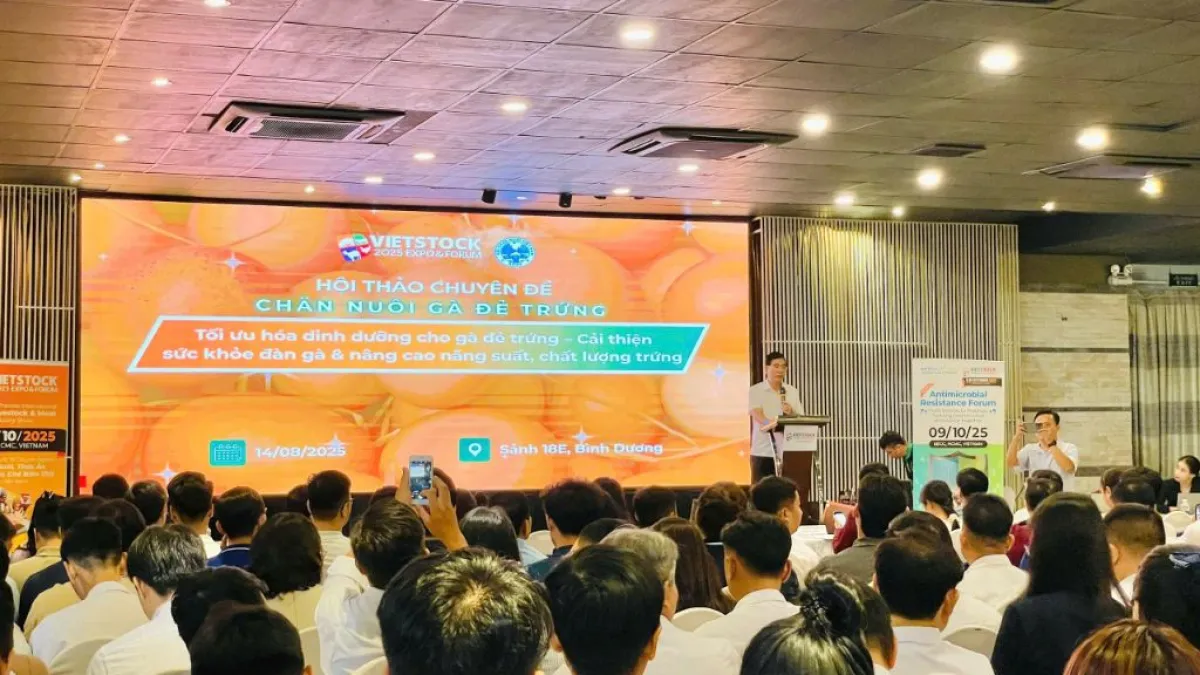 Không khí sôi động đang bao trùm Sảnh 18E, Bình Dương với hơn 300 đại biểu tham dự Hội thảo chuyên đề Gà đẻ trứng chính thức diễn ra. Chương trình quy tụ các chuyên gia hàng đầu chia sẻ về kỹ thuật chăn nuôi, giải pháp tối ưu dinh dưỡng, cùng những xu hướng mới giúp nâng cao năng suất và chất lượng trứng.