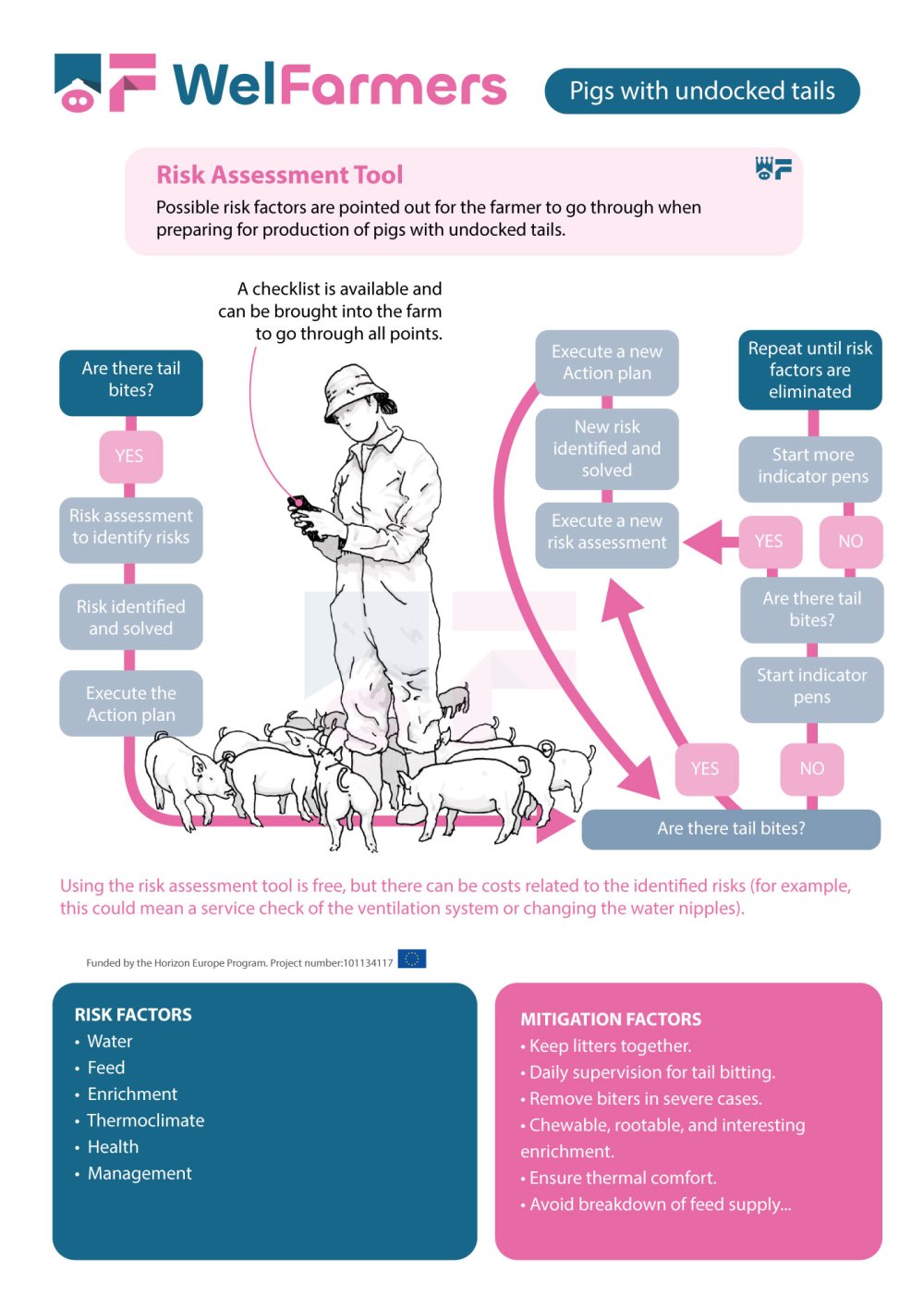 This infographic highlights the practical tool that helps farmers identify potential risk factors when preparing for the production of pigs with undocked tails.