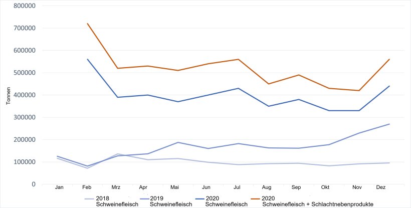 Die chinesische Regierung hat kürzlich die Daten für den Monat Dezember veröffentlicht, die mit 440.000 Tonnen die Schweinefleischimporte des gesamten Jahres 2020 auf 4.380.000 Tonnen erhöhen – doppelt so viel wie im Jahr 2019 (2.002.679 Tonnen). Werden auch die Schlachtnebenprodukte mitgerechnet, so belaufen sich die Gesamtimporte im Jahr 2020 auf 5.730.000 Tonnen.