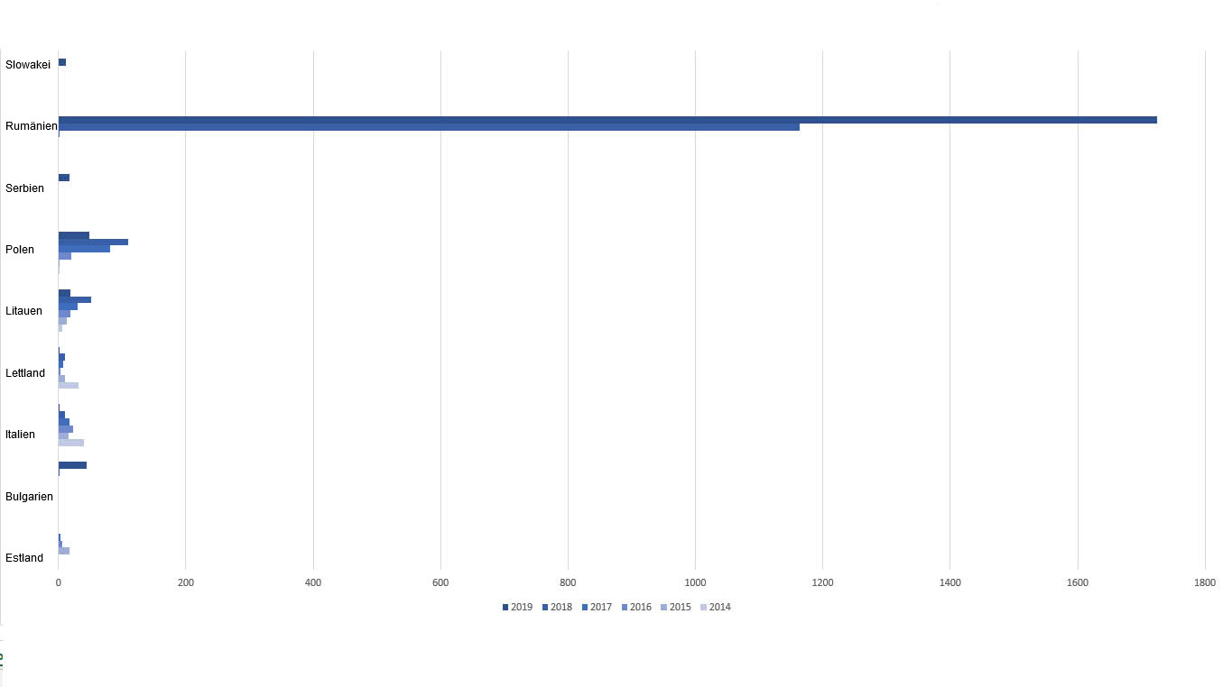| Rumänien | 0/0 | 0/0 | 0/0 | 2/0 | 1164/182 | 1724/683 |