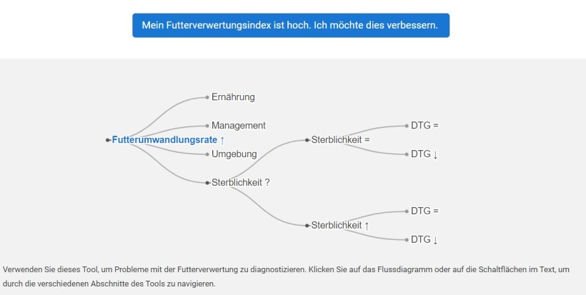 Über das neue, von 333 entwickelte Tool gibt Enric Marco Ihnen fachkundige Ratschläge zur Verbesserung der Futterverwertung. Er beginnt mit zwei wichtigen Fragen: Hat sich die Sterblichkeit im Betrieb verändert? Wie sieht es mit der durchschnittlichen täglichen Gewichtszunahme aus? Unter Berücksichtigung Ihrer spezifischen Antworten liefert das Tool mögliche Gründe dafür, warum der Futteraufwand in Ihrem Betrieb höher ausfällt, als Sie es sich wünschen.