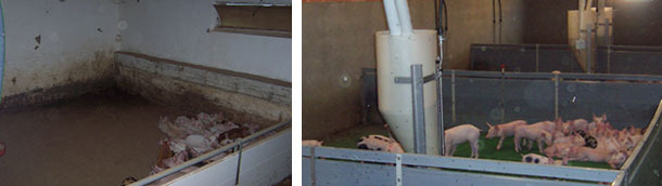 Design of facilities and equipment for pig farms: building design, climate control, feeding systems, etc.