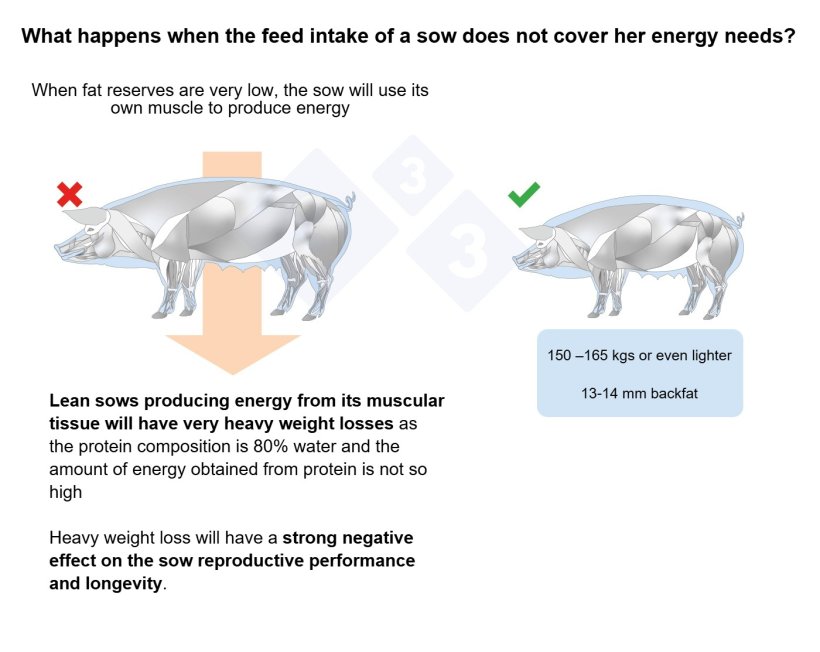 If the diet for the growing gilt until first service provides a limited amount of protein, but the animal maintains its feed intake, this extra energy will be used to grow fat, and the weight of the animal will be reduced.