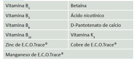 B.I.O.Zink SL contiene vitaminas cuidadosamente equilibradas y micromineales orgánicos. Dentro de sus componentes, se presta especial atención al cinc, un microelemento esencial para el funcionamiento adecuado de la piel y la mucosa, diversas enzimas y el sistema inmunitario. Una deficiencia de cinc, afecta el desarrollo del esqueleto y la calidad de la piel y la canal, resultando en una pérdida de la rentabilidad. B.I.O.Zink SL ayuda a mejorar la salud de las pezuñas, importantes para una vida orientada al rendimiento y el bienestar de los animales.