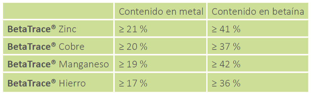 dos aditivos esenciales. BetaTrace® utiliza betaína como ligante funcional.