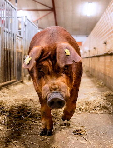 Maximum profit for pig producers, slaughterhouses, and the retail sector. Danish Duroc has a superior high feed efficiency and utilization. With Danish Duroc you get lower feed costs, rapid growth, and high meat quality, all of which means higher earnings in your production.