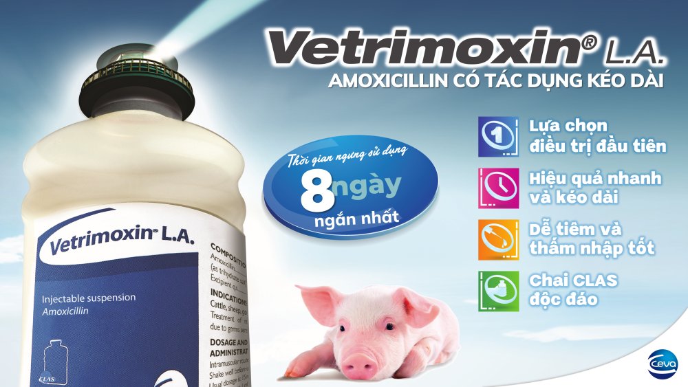 Sử dụng VETRIMOXIN® L.A cho gia súc, cừu, dê, heo.