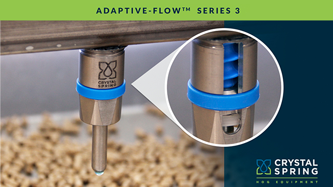 Desde 1º de janeiro de 2024, todos os Crystal Spring Wet/Dry Feeders serão enviados com os bicos de alimentação Adaptive-Flow™ Série 3. Bicos de mordida e bicos de bebedouro Adaptive-Flow™ adicionais serão lançados na primavera de 2024.