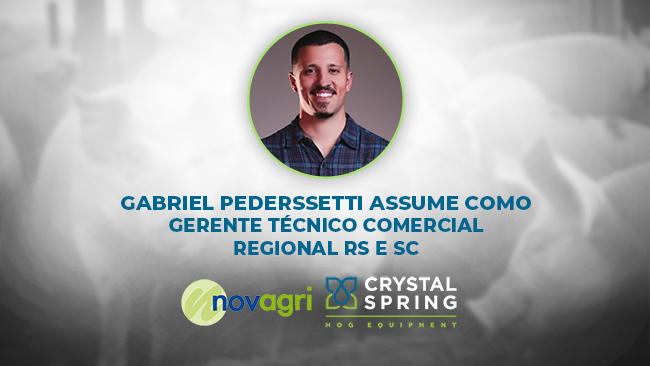 Gabriel Pederssetti, técnico em agropecuária e médico veterinário é a nova contratação da Novagri S.A. para assumir o cargo de gerente técnico comercial regional RS e SC. Com uma vasta experiência na suinocultura, atuando no campo Gabriel veio para somar ao time e fortalecer os resultados da empresa.