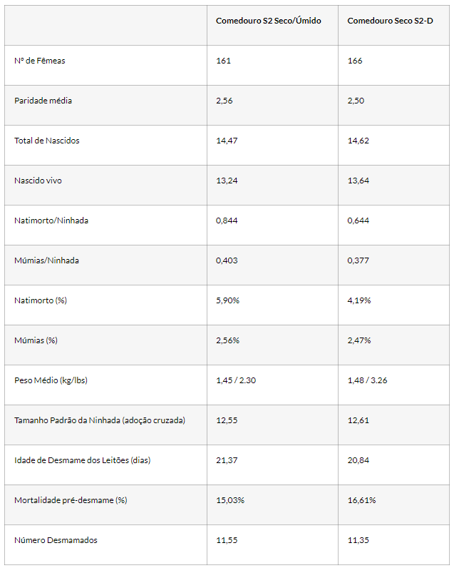 Esses resultados mostram alguns dos potenciais benefícios e implicações práticas ao adotar nossos comedouros série S2 às suas maternidades.