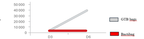 Ảnh 2. Sự phát triển của vi khuẩn ở túi GBT so với túi bactibag