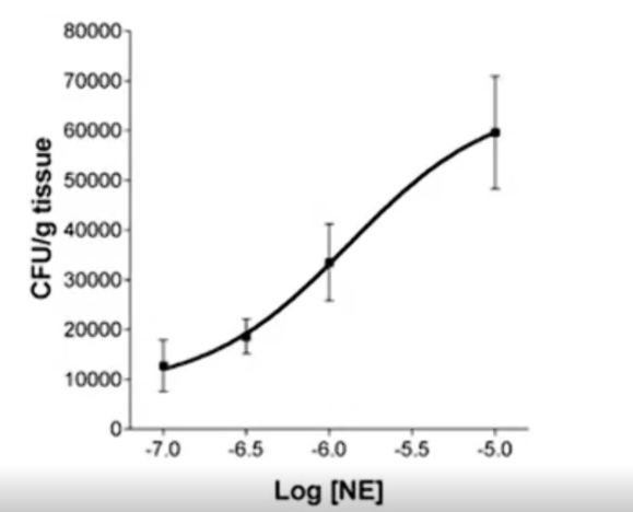 Figure 1: Adherence of pathogenic E. Coli to intestinal lining vs norepinephrine content
