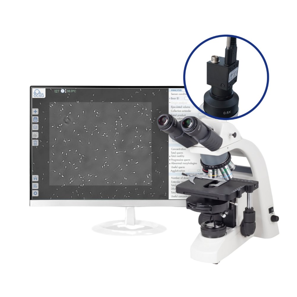 El equipo completo para el análisis CASA incluye un PC con el software adecuado, un monitor, un microscopio trinocular con contraste de fases y placa térmica incorporada, una cámara de vídeo, una placa térmica externa para tubos, pipetas automáticas de precisión y cámaras de recuento. Las ventajas de estos sistemas son numerosas: automatización del proceso, resultados objetivos, cálculos precisos de las dosis a producir y análisis inmediato de la morfología sin necesidad de tinción. Además, permiten el reconocimiento de gotas citoplasmáticas y defectos de cola, y la posibilidad de archivar imágenes en una base de datos, facilitando informes detallados y la exportación de datos a Excel.