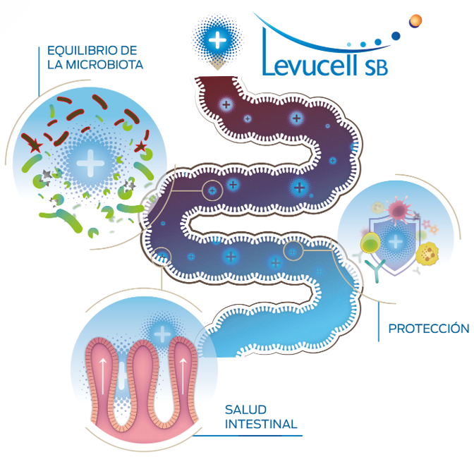 LEVUCELL SB dificulta la colonización del tracto intestinal por bacterias indeseables debido a su capacidad específica para neutralizar la actividad de algunas toxinas microbianas, como la toxina A de Clostridium difficile o las endotoxinas producidas por cepas de E. coli.