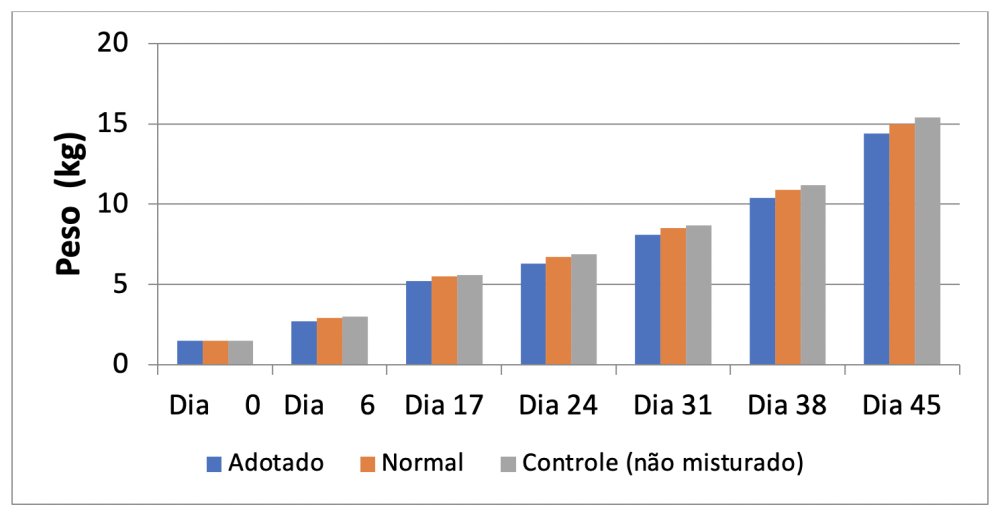 Adotado = Leitões transferidos (6 dias pós-parto); Normal = Leitões que permaneceram em suas leitegadas de origem, mas que receberam leitões transferidos (6 dias pós-parto); Controle = Leitões que permaneceram com suas mães e leitegadas de origem.