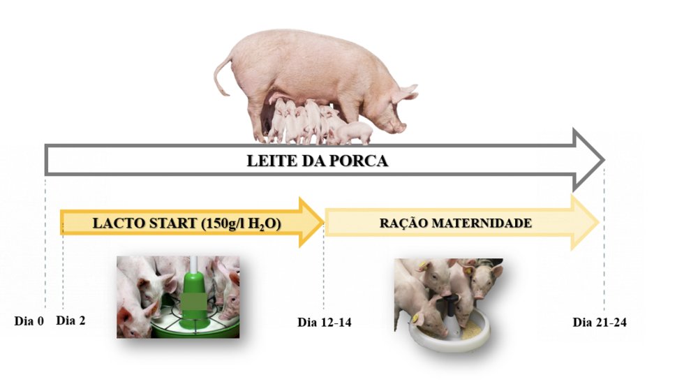 É importante ressaltar que o uso do creep-feeding com ração formulada com ingredientes altamente digestíveis continua sendo essencial no manejo alimentar e nutricional da maternidade, e que o uso de creep-feeding associado ao uso de sucedâneos lácteos promove maior ganho de peso e maior preparo do trato gastrointestinal dos leitões para o consumo de dietas sólidas após o desmame (12). Leitões que consomem sucedâneo lácteo + ração via creep feeding na maternidade apresentaram ganho de peso superior comparados à leitões com acesso somente à ração via creep feeding (7). Também é importante frisar que o uso de sucedâneos lácteos não substitui a fêmea, mas sim é uma importante ferramenta nutricional que pode ser utilizada nesta fase, a fim de compensar a insuficiente produção de leite de fêmeas hiperprolíficas.