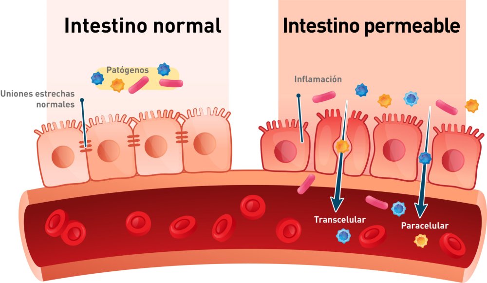 En el tracto gastrointestinal, la redirección del flujo sanguíneo compromete la integridad de la barrera epitelial intestinal, lo que a menudo resulta en un intestino permeable. Esto permite la transferencia de antígenos dietéticos o la infiltración de patógenos. El estrés oxidativo celular en los enterocitos es un contribuyente importante a esta condición de intestino permeable.