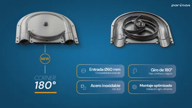 Fabricado en acero inoxidable 304 y equipado con tapas reforzadas y polea de alta resistencia, permite optimizar tu granja con giros completos de 180º sin frenar el flujo del pienso.